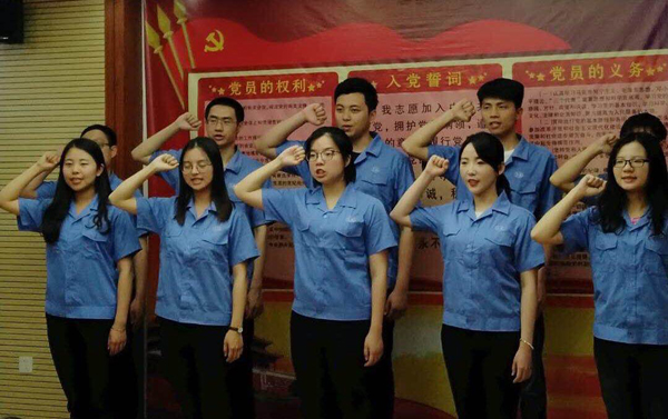 雖然各位團員已對團歌了然于心,但他們還是認認真真地、在專業人員的指導下練習合唱、參與彩排。拍攝之日,團員們已經能夠雄赳赳、氣昂昂、有節奏感地唱出團歌,氣氛慷慨激昂、振奮人心,展現了 “青春在奉獻中閃光,理想在拼搏中飛揚”共青團精神。拍攝結束,團員們在黨團活動中心重溫了入團誓詞。