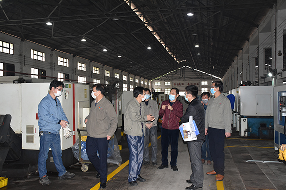 ????2020年2月12日,龍軸集團(tuán)公司開始復(fù)工復(fù)產(chǎn)。當(dāng)天上午,公司黨委書記、董事長(zhǎng)、應(yīng)對(duì)新型冠狀病毒感染肺炎疫情防控工作領(lǐng)導(dǎo)小組組長(zhǎng)曾凡沛、黨委副書記、總經(jīng)理、應(yīng)對(duì)新型冠狀病毒感染肺炎疫情防控工作領(lǐng)導(dǎo)小組組長(zhǎng)陳晉輝及黨委副書記、應(yīng)對(duì)新型冠狀病毒感染肺炎疫情防控工作領(lǐng)導(dǎo)小組副組長(zhǎng)康安偉一行深入各廠區(qū)檢查復(fù)工復(fù)產(chǎn)疫情防控及安全生產(chǎn)工作。