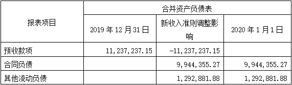 根據新收入準則及相關銜接規定,本公司自2020年1月1日起將原計入“預收款項”調整至“合同負債”及“其他流動負債”列報;其中,將原“預收款項”中涉及的增值稅額調整至“其他流動負債”列報,其余不含稅金額調整至“合同負債”列報。