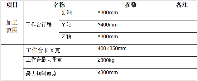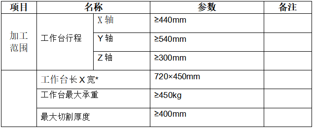 (1)設(shè)備功能要求(關(guān)注工作臺長X寬為720×450mm以上,最大切割厚度大于400 mm)