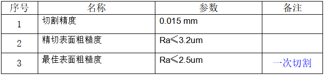 機床最大線切割速度≥120mm2/min,切割速度能達到越高越好。精加工(尺寸精度達到0.015mm,表面粗糙度達2.5um)時,線切割速度≥20mm2/min。