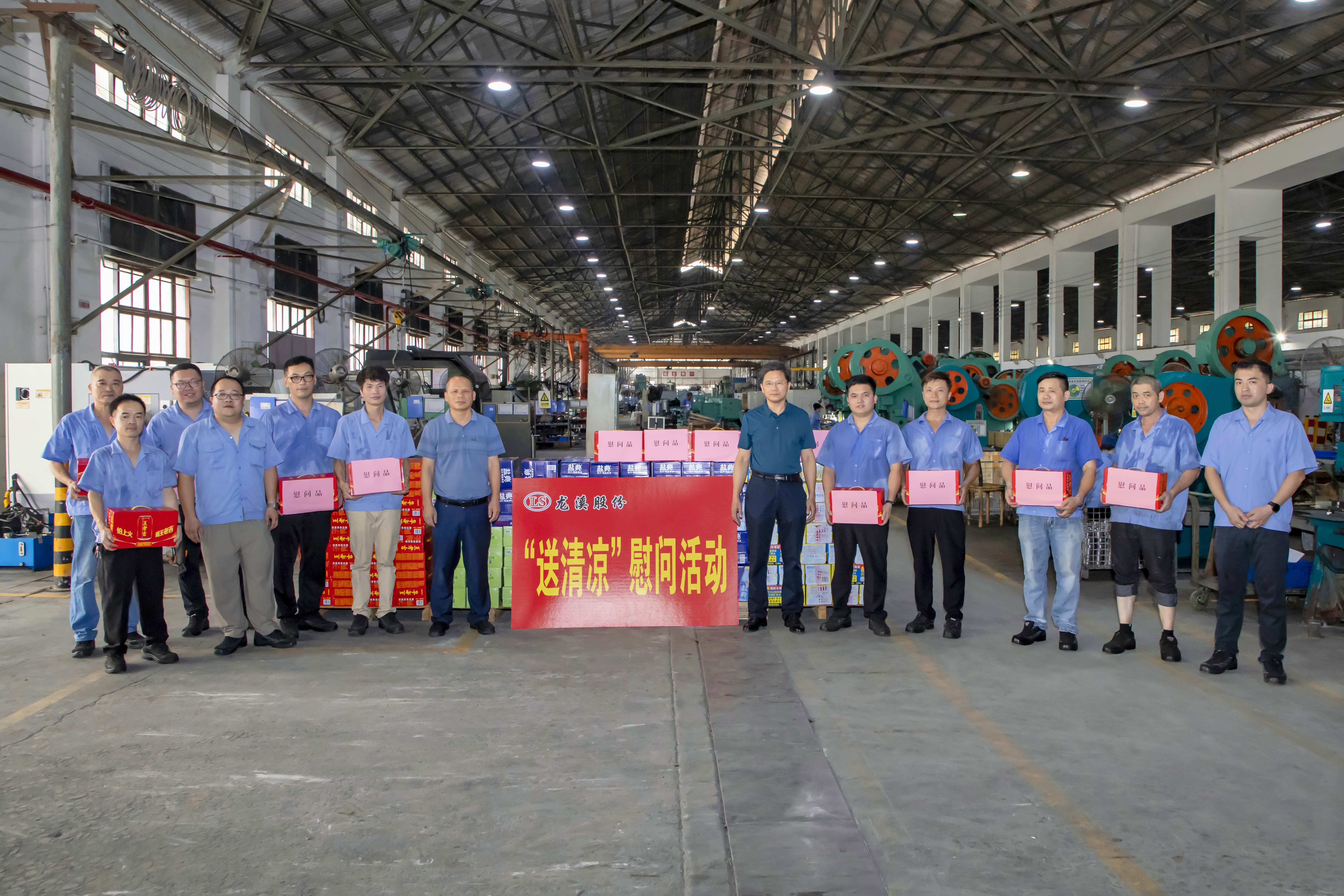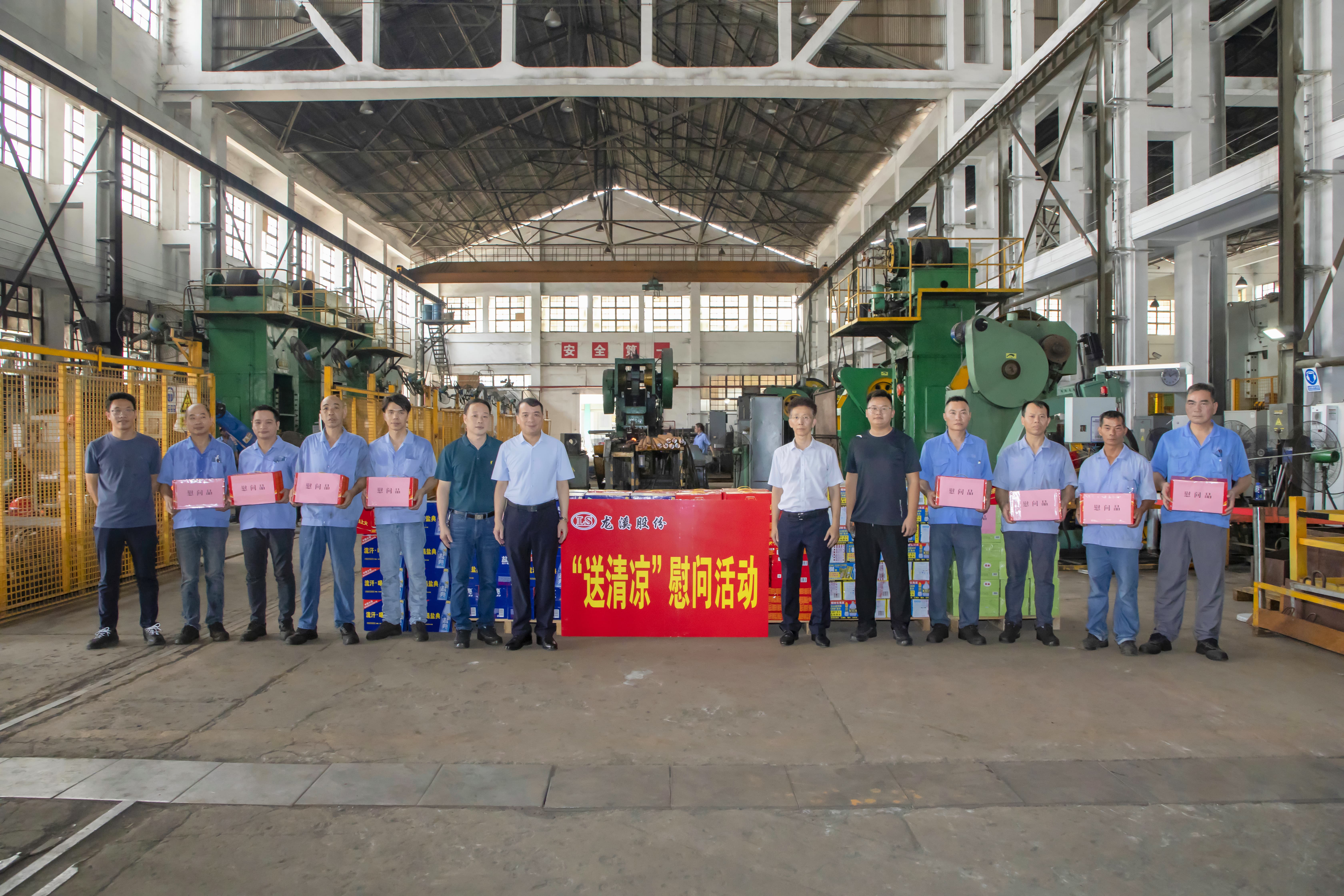 連日來,高溫天氣持續(xù),熱浪席卷廠區(qū)。為切實(shí)做好一線員工關(guān)懷工作,2025年7月17日,集團(tuán)黨委書記、董事長陳晉輝,黨委副書記、總經(jīng)理陳志雄帶領(lǐng)領(lǐng)導(dǎo)班子成員分四組深入各生產(chǎn)車間開展 “送清涼” 慰問活動(dòng),為高溫崗位員工送去防暑降溫物資和誠摯問候,讓員工感受到企業(yè)的關(guān)懷與溫暖。