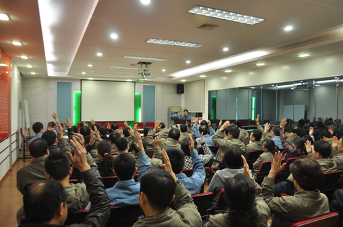 2015年4月27日至28日晚上,公司舉行2014年度中層主管述職報告及中層互評會議。公司高管及公司的92名中層主管參加了會議。此次述職報告44名中層主管代表本部門、車間作2014年—2015年上半年工作總結匯報。之后,公司高管及中層主管分別填寫《2014年度中層主管考核評價表》,開展中層主管評價及互評工作。