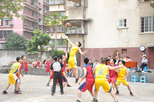 2014年10月24日下午,經過多日角逐,“龍軸奮進杯”職工籃球賽決賽在部室隊與后勤聯隊兩支隊伍間激烈的進行著。兩支隊伍均實力強勁,雙方你來我往,互不相讓,比分交替上升,現場氣氛非常緊張熱烈,隊員們激烈拼搶,在場觀眾們亦情緒高漲,精彩的進球時的喝彩聲此起彼伏。
