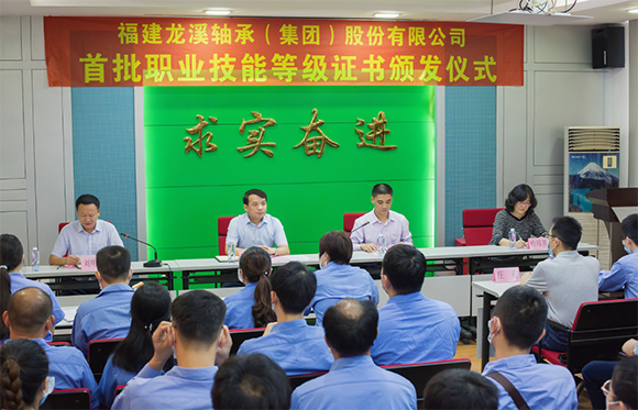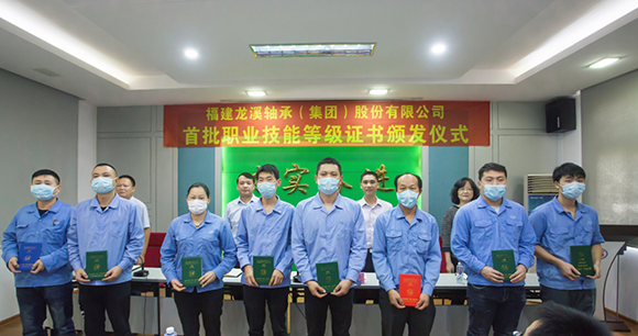 2020年11月19日上午,龍軸集團首批職業技能等級證書頒發儀式在公司二樓會議室隆重舉行。這是漳州市首家按照“誰評價、誰發證、誰負責”原則對首批163名通過企業職業技能等級認定考核的職工頒發技能等級證書。漳州市人力資源和社會保障局副局長林貴達,龍軸集團黨委書記、董事長陳晉輝,黨委副書記劉明福等領導出席頒證儀式,40多名取得首批公司職業技能等級證書的職工代表及考評員代表參加。頒證儀式由劉明福主持。