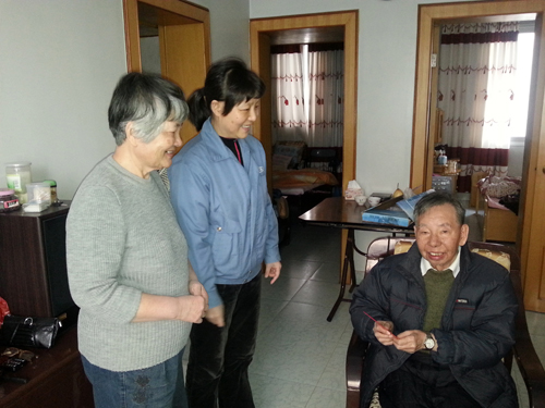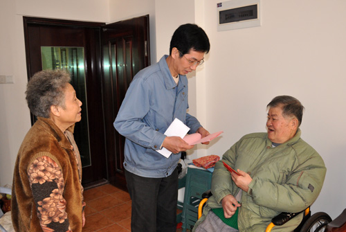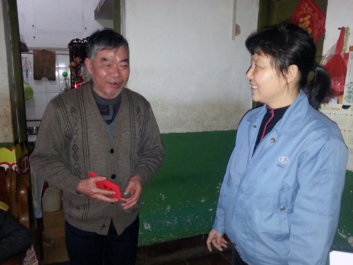 啟動儀式后,公司義工代表隊(duì)作為活動的第10支義工隊(duì)伍,在新橋社區(qū)工作人員帶領(lǐng)下,將愛心傳遞到了位于前鋒新村、南太武、新橋等地的5戶低保戶人員家中。義工代表們親切的笑臉,熱情的慰問為連日來的低溫帶來濃濃的暖意。