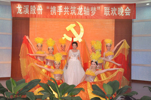 2013年9月30日晚,為慶祝建國64周年,公司黨委、工會、共青團在俱樂部一樓舉行“攜手共筑‘龍軸夢’”聯歡晚會。