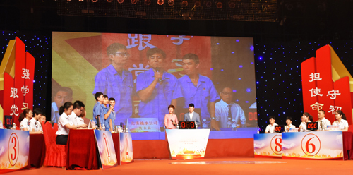 為進(jìn)一步深入學(xué)習(xí)習(xí)近平新時(shí)代中國(guó)特色社會(huì)主義思想和黨的十九大精神,響應(yīng)黨中央開(kāi)展“不忘初心、牢記使命”主題教育要求,2019年6月26日下午,漳州市委組織部、漳州市國(guó)資委在漳州電視臺(tái)聯(lián)合舉辦“我和我的祖國(guó)——不忘初心跟黨走、牢記使命強(qiáng)學(xué)習(xí)”知識(shí)競(jìng)賽。公司黨委選派紀(jì)藝勇、張?jiān)床拧⒈R琦、范二金、陳智明等五人組成代表隊(duì)參賽,公司黨委書(shū)記、董事長(zhǎng)曾凡沛,黨委委員、副總經(jīng)理康安偉和來(lái)自各黨總支、黨支部的32名觀眾到場(chǎng)觀看比賽。