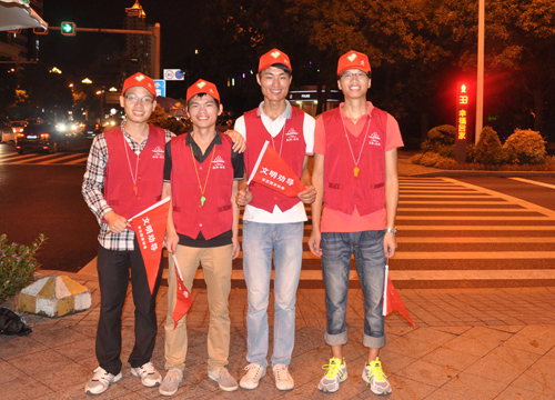 活動當晚,受臺風天氣影響,下起了雨,但這絲毫不影響我司志愿者們的服務(wù)熱情,他們統(tǒng)一身著志愿服務(wù)紅馬褂、帽子,持宣傳小旗、口哨,早早地走上街頭,對闖紅燈和橫穿馬路的行人進行耐心、禮貌的勸導,制止亂扔垃圾等不文明行為的發(fā)生,讓行人自覺規(guī)范行為,樹立較強的交通安全意識和文明風尚意識。