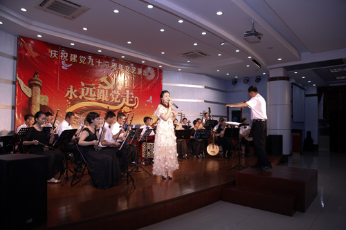 ????該演出以“永遠跟黨走”為主題,通過演唱、演奏的方式,慶祝中國共產黨建黨96周年。沙風韻樂團改編創作的《龍江歡歌》,傳頌了建設祖國、發展漳州的“龍江精神”;《黨旗更鮮艷》、《祖國之戀》、《最美的歌兒唱給媽媽》等一系列膾炙人口的歌曲陸續登場,飄蕩在整個演出會場,讓人陶醉。另外,口哨獨奏《軍港之夜》、笛子獨奏《春到湘江》,美妙的器樂獨奏也博得觀眾的一致好評。公司青年歌手張錚獻唱了《七月的草原》和《我為共產主義把青春貢獻》,展示了不俗的實力。精彩紛呈的表演形式、豐富多彩的演出內容不斷將演出推向一個又一個的高潮,觀看演出的員工群眾紛紛表示,這場演出不僅賞心悅目還頗具教育意義,讓自己的愛國愛黨情懷得到一次洗禮和升華。