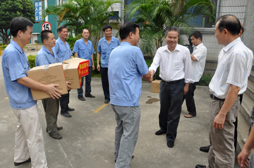 2013年7月2日上午,市委常務、市總工會主席張禎錦一行在公司工會主席張泰生、常務副主席洪麗玲的陪同下,到我司藍田廠區看望、慰問高溫酷暑堅持奮戰在一線的廣大職工,為他們送去防暑降溫用品。市領導在了解了我司的生產情況及公司在保證員工安全健康的前提下,采取的一系列防暑降溫措施后,對我司表示肯定,并希望我司能夠繼續采取有效措施,合理安排工作時間,進一步改善職工工作環境和條件,把防暑降溫工作做得更好。
