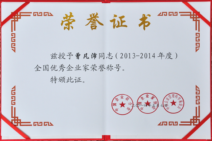 全國優秀企業家(曾凡沛)