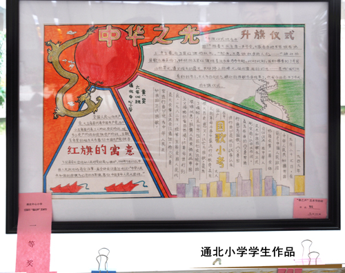 還未走進(jìn)校園,就聽見清亮的童聲朗朗,操場上早成了一片歡樂的海洋,有節(jié)目演出的同學(xué)們或是忙著裝扮或是還緊張的背著臺詞、練習(xí)舞步;沒有表演節(jié)目的同學(xué)們也搬著板凳整整齊齊的坐在舞臺前面,準(zhǔn)備為自己的小伙伴兒加油打氣兒;新搭起的藝術(shù)長廊更是吸引了眾多家長們,這里掛滿了學(xué)生們的藝術(shù)作品,有書畫作品、科技小發(fā)明、賀卡、板報……琳瑯滿目、色彩斑斕,每一幅作品都充滿了孩子們的爛漫童真和美好祝愿。